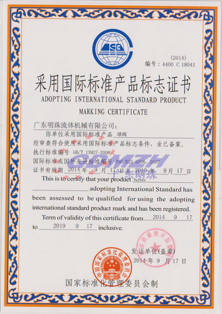 所在位置:首頁 > 質量體系 > > 采用國際標準產品標志證書