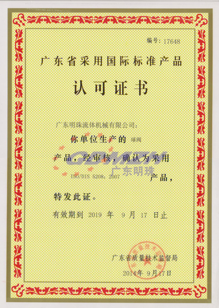 所在位置:首頁 > 質量體系 > > 廣東省采用國際標準產品認可證書