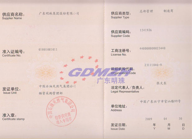 中國(guó)石油物資供應(yīng)商準(zhǔn)入證