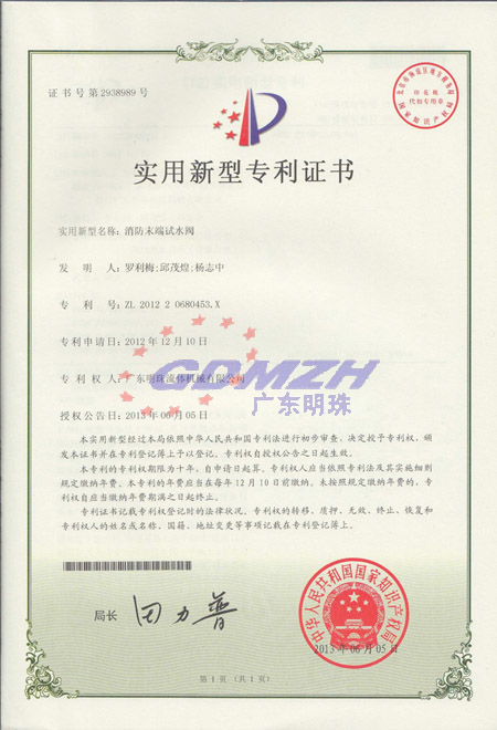Location: Home > Quality System > Patent > 消防末端試水閥