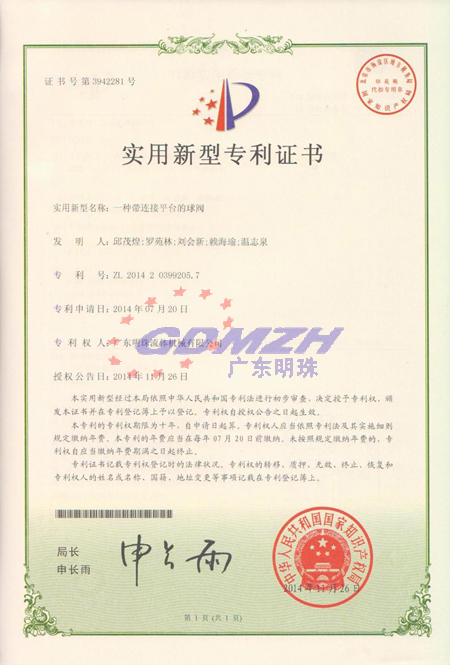 Location: Home > Quality System > Patent > 一種帶連接平臺的球閥