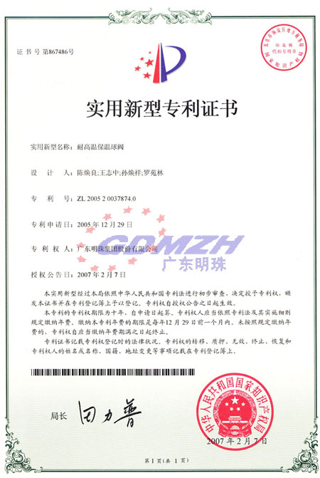 Location: Home > Quality System > Patent > 耐高溫保溫球閥