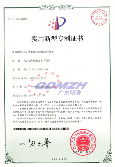 Location: Home > Quality System > Patent > 研磨超音速噴涂圓球裝置